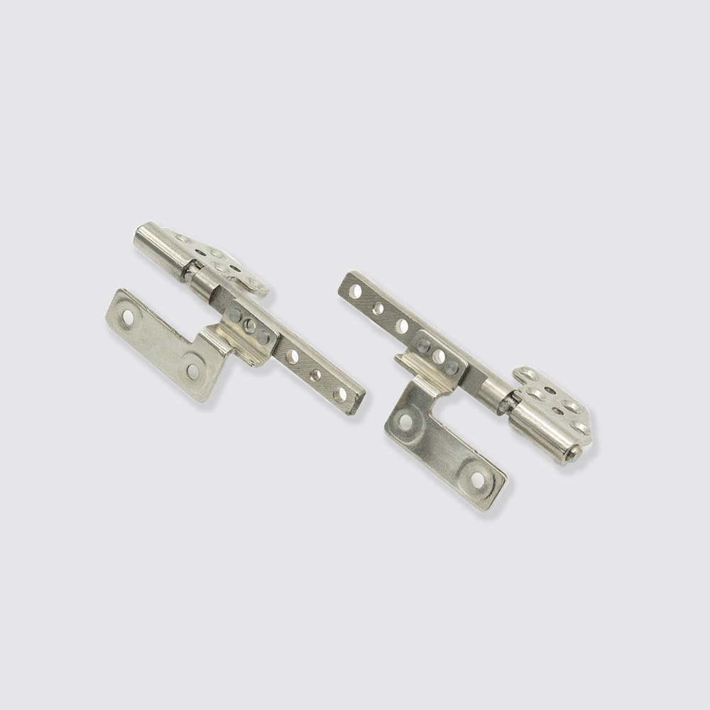 笔记本电脑万搏手机版由两个钣金件一个轴组成,外表镀镍,采用包圆+压铆结构,使用进口SK7材质,带限位结构。轴径5MM,结构小巧,适用各类轻薄笔记本。